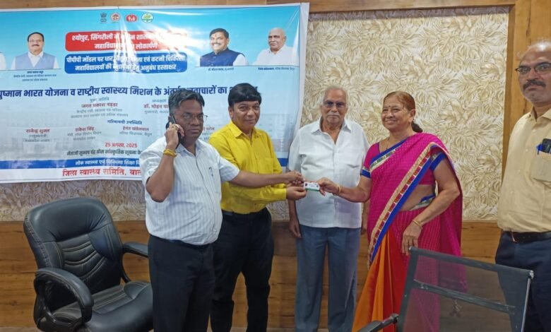 जिला स्तर पर इस कार्यक्रम का सीधा प्रसारण जिला आयुष कार्यालय स्थित सभाकक्ष में किया गया जहां मुख्य चिकित्सा एवं स्वास्थ्य अधिकारी डॉ .परेश उपलप तथा सिविल सर्जन डॉ. नीलय जैन, आयुष्मान भारत योजना के नोडल अधिकारी डॉ. पंकज महाजन के द्वारा 70 वर्ष से अधिक आयु वर्ग के वरिष्ठ नागरिकों को पीवीसी कार्ड का समारोह पूर्वक वितरण किया गया। इस अवसर पर बडी संख्या में आयुष्मान भारत वय वंदना योजना के हितग्राही, स्वास्थ्य एवं आयुष विभाग के अधिकारी, आयुष्मान मित्र उपस्थित थे।