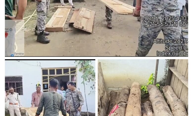 घर की तलाशी में 38 नग सागौन एवं अन्य प्रजाति के चिरान एवं 0.341 घनमीटर लट्ठे बरामद किया गया